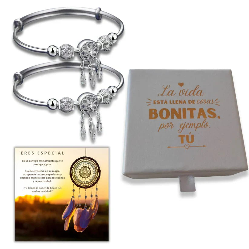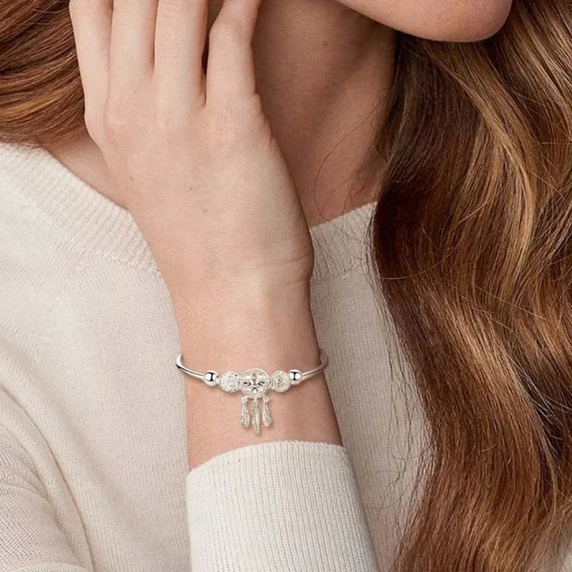 Protege tus sueños y atrae buena fortuna con esta hermosa pulsera de plata con un atrapasueños, diseñada para llenar tu vida de positividad y serenidad.